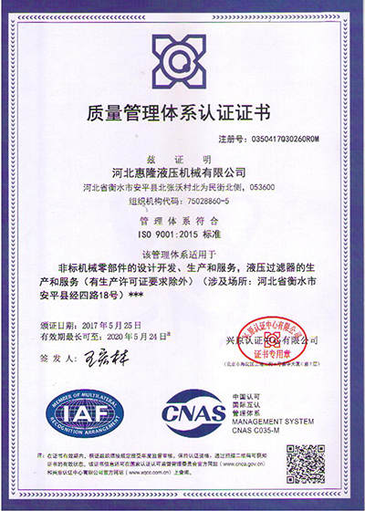 河北惠隆液压机械有限公司主要生产回油过滤器,吸油过滤器,液压过滤器,空气过滤器等过滤产品我们一直致力于满足市场的需求,为客户的机械清洁运行提供优良的产品。本公司设备精良,工艺优良,检验检测设备完善。产品全面按照ISO9001:2015质量管理体系生产,对采料,生产, 销售实施全程质量控制,使产品质量各项性能指标均优于国家标准企业每年均投入大量的资金,引进优良的流水线和改进各种生产加工设备。